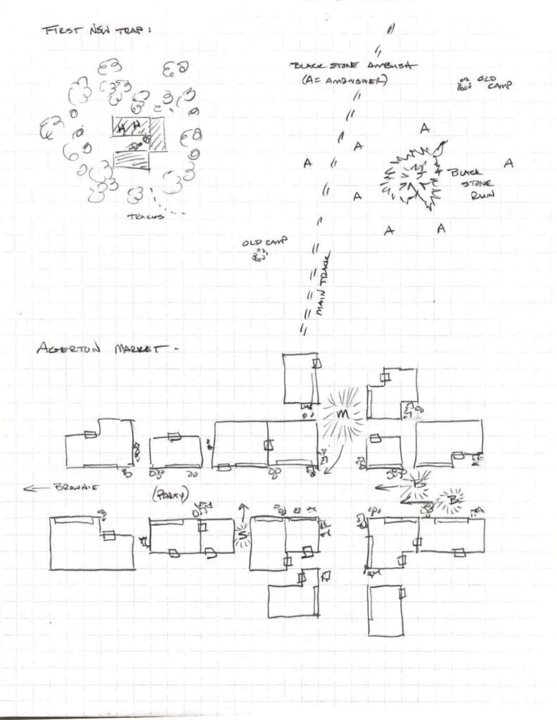 ​If the two scouts from the earlier road encounter have had time to inform the troop, they will be prepared for the party by hiding in underground pits, springing up as the group passes nearby. If not forewarned, the Nightshades will attack the party’s flanks as they pass by (DC25 to detect footprints).