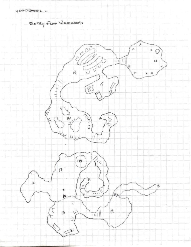 ​Hygan has taken advantage of this arrangement and while his power exists in this little corner of Yggdrasil’s network, he has cut off normal travel routes through the tree from the Wildwood Lodge. Once he has been eliminated, the structure of the tree will begin to revert to normal, quickly in this case since Hygan has used considerable effort to bend the tree to a rigid flat structure that it naturally avoids. The native passages of Yggdrasil can be confusing and dangerous to those unfamiliar to its ways. Anone who tries to travel Yggdrasil without knowing where they are going has a chance of exiting in a completely different part of Golarion or even a different plane of existence.